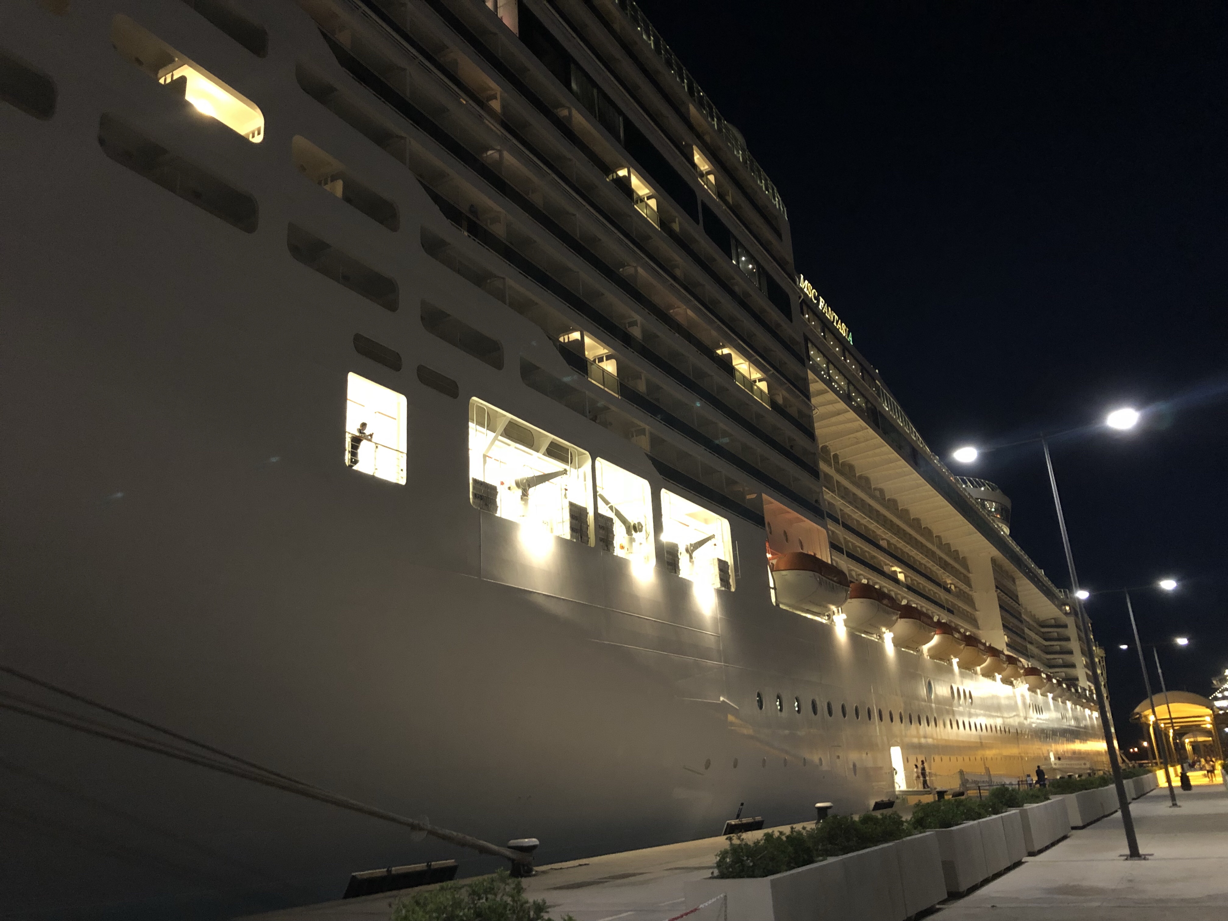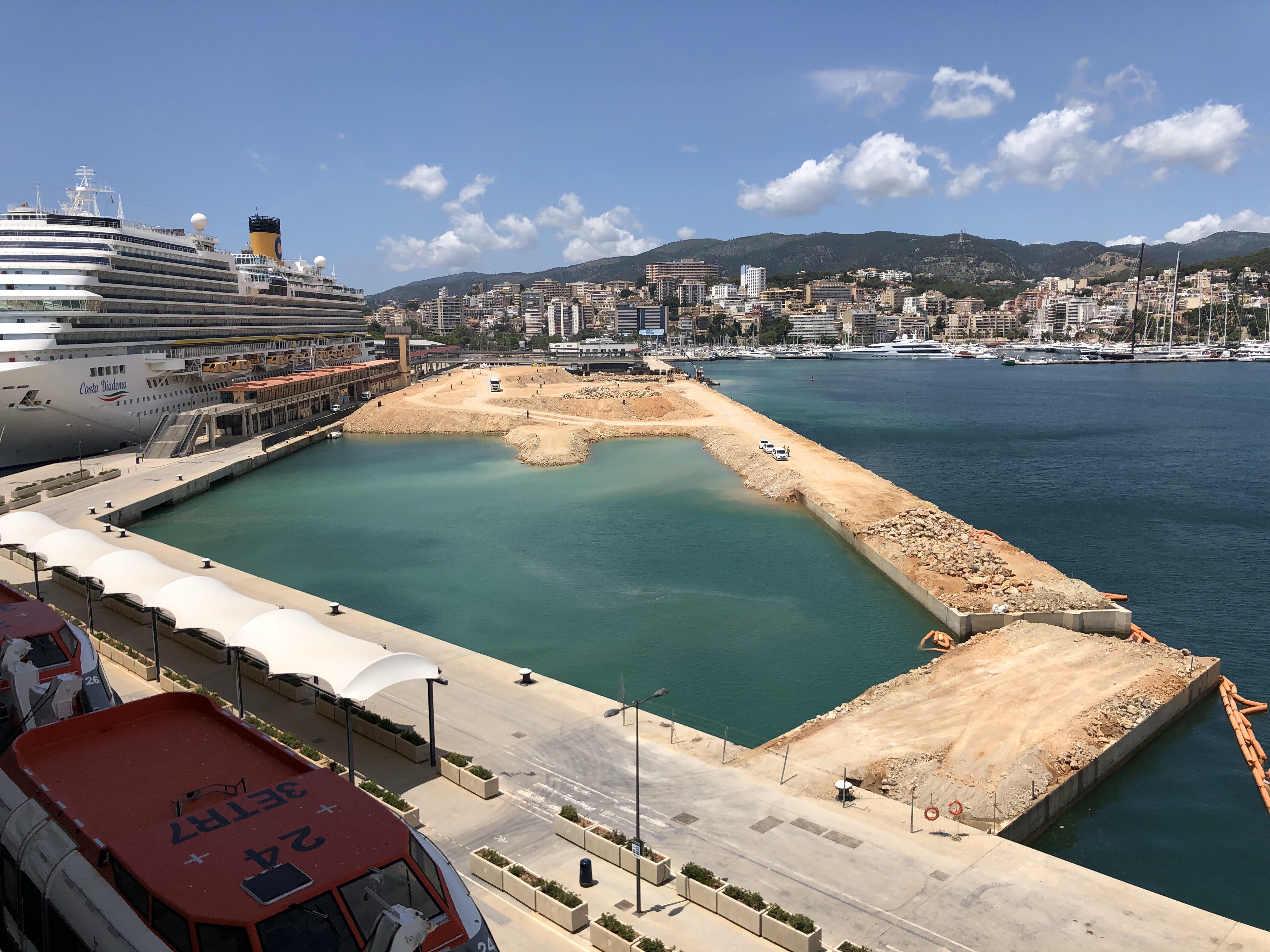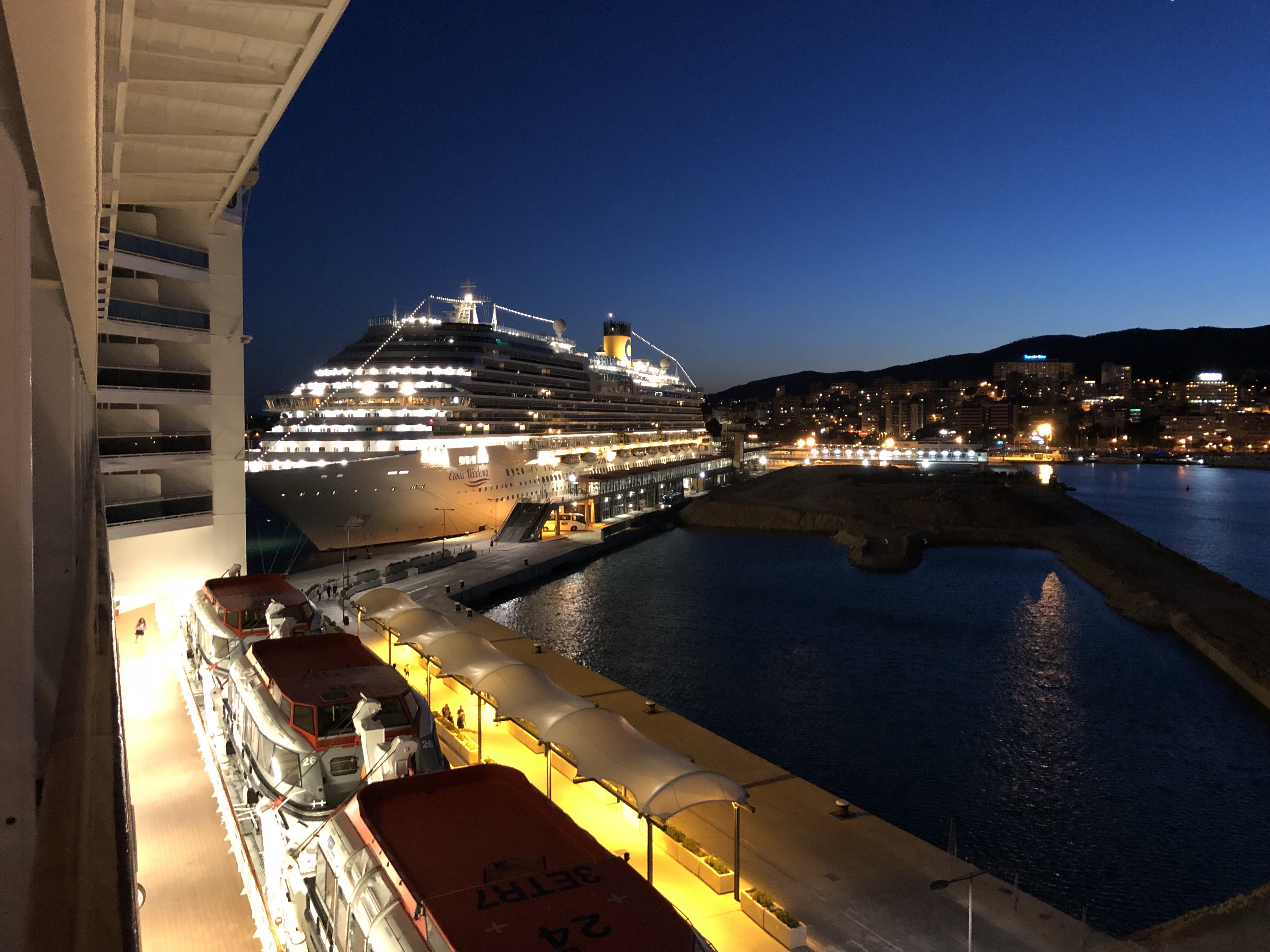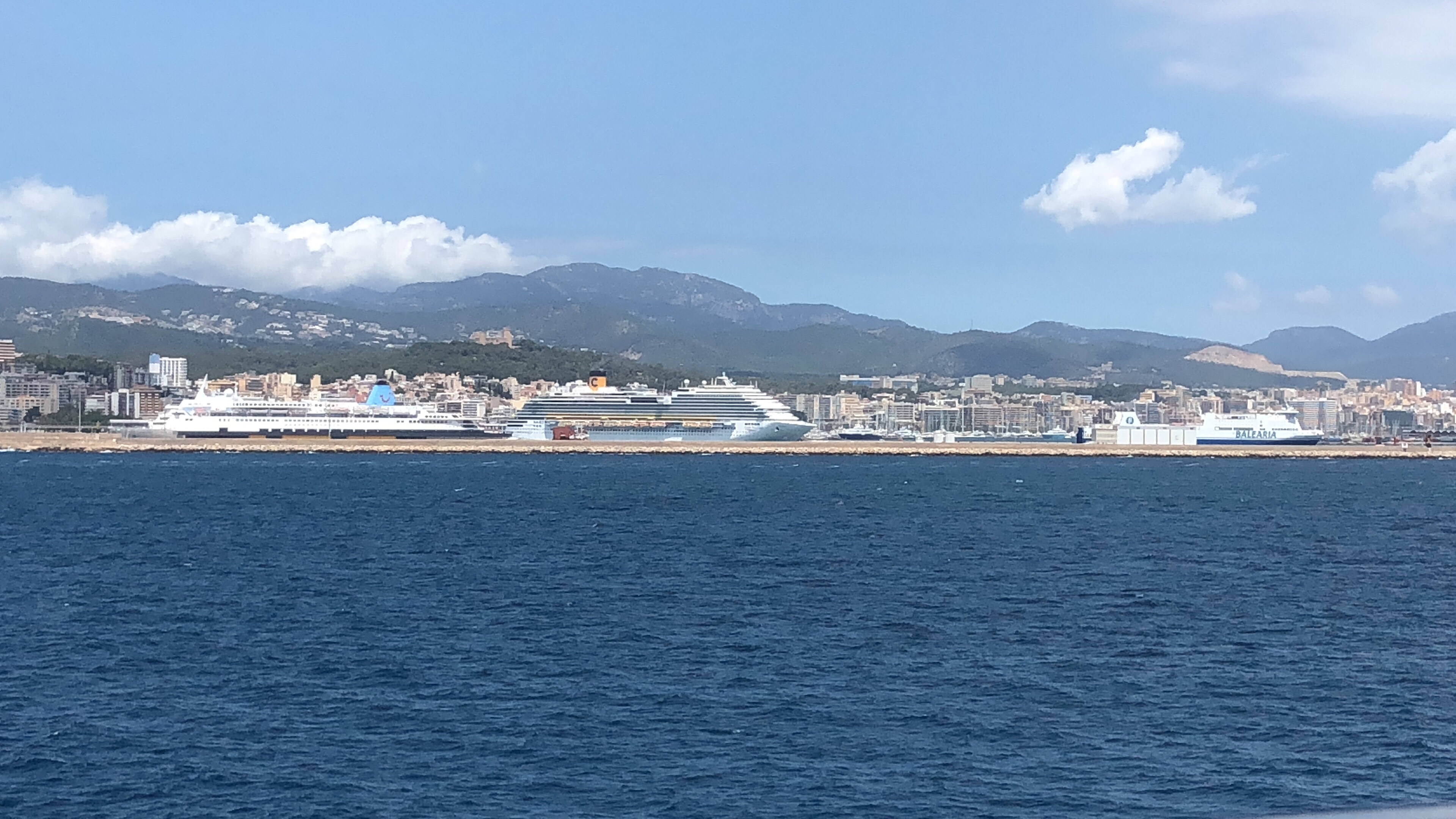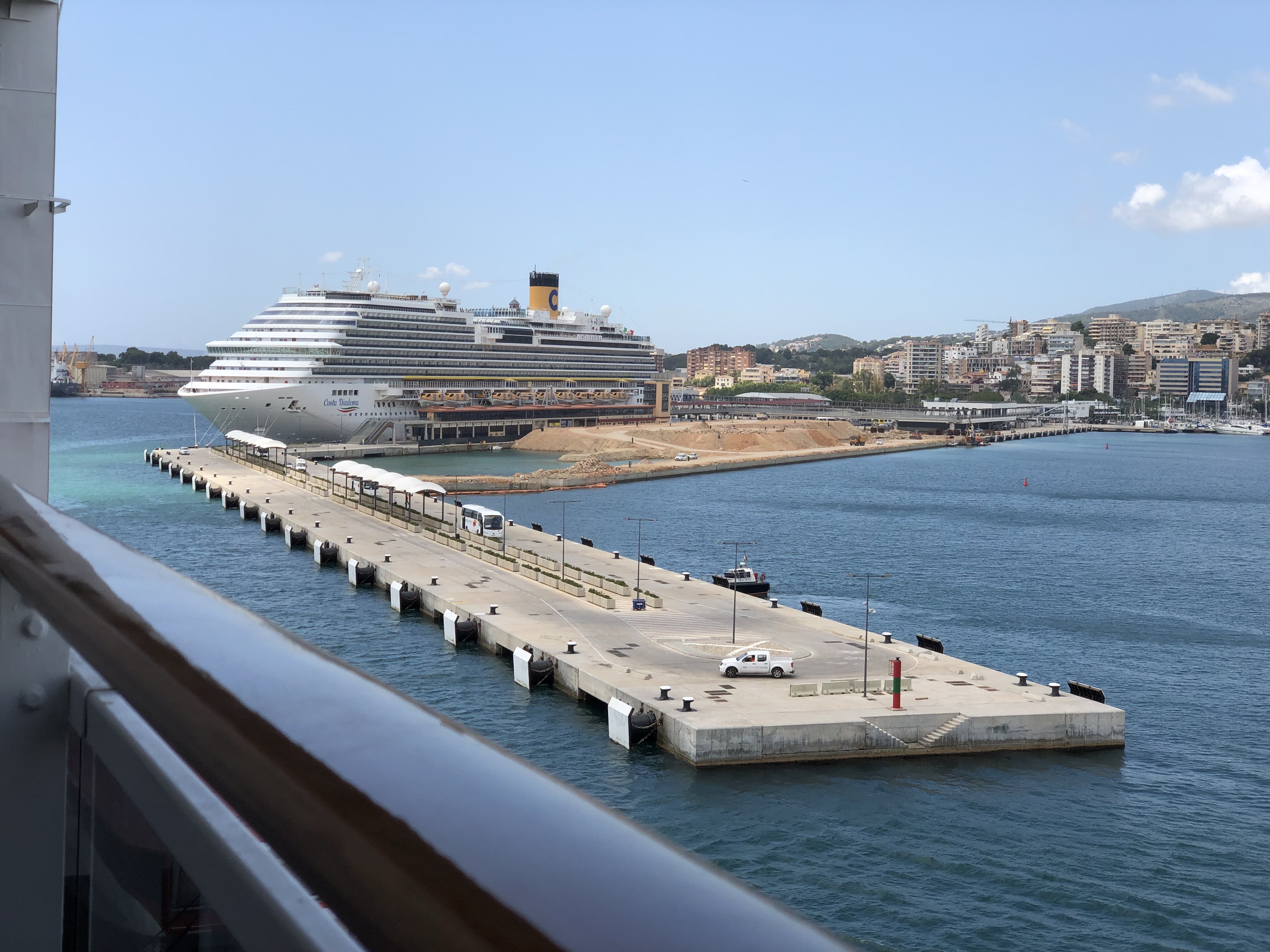 Unser Schiff im Hafen von Palma kurz vor der Abreise Richtung Barcelona. Im Hintergrund zu sehen ist die Costa Diadema, die ebenfalls hier im Hafen liegt.