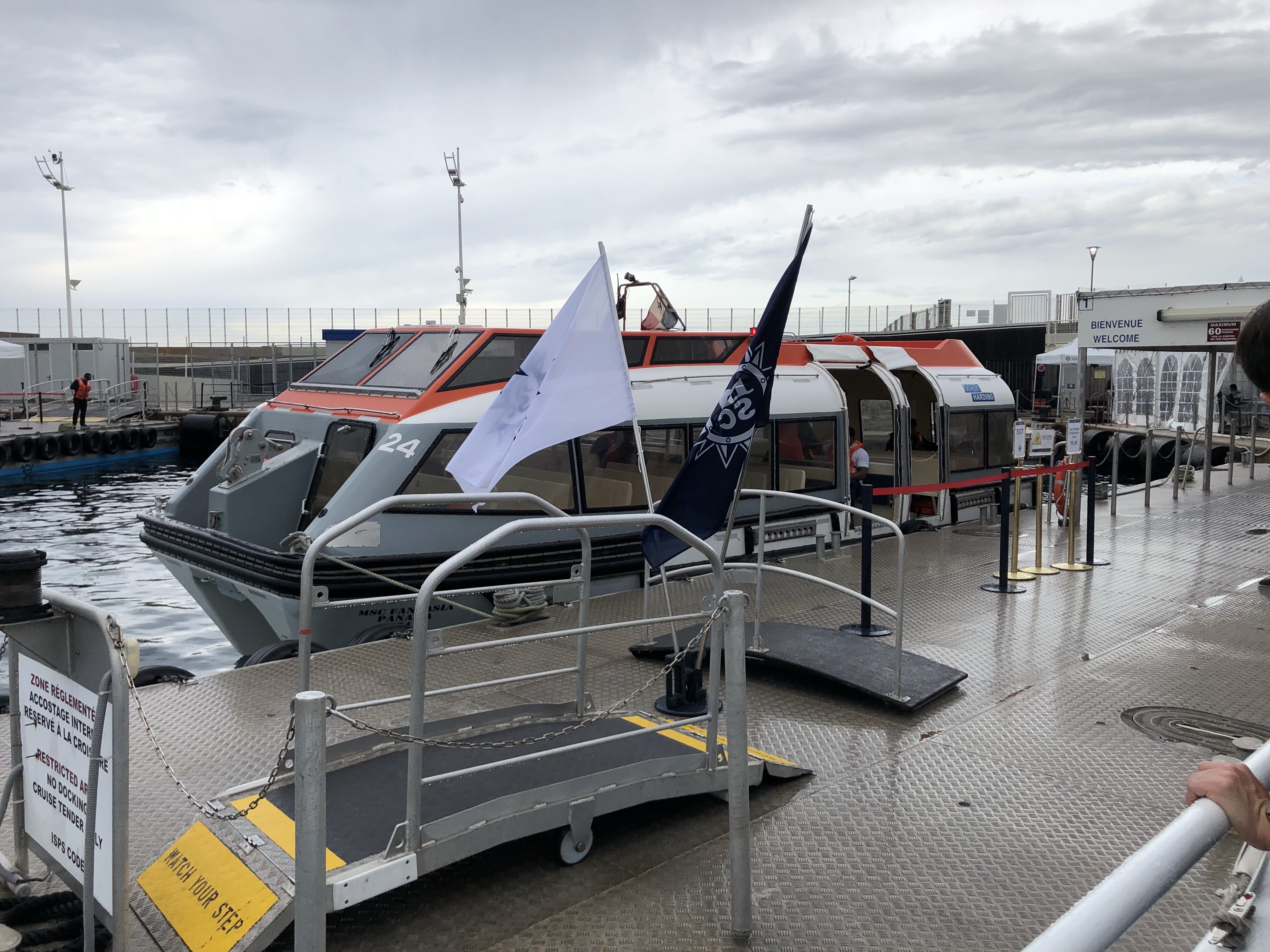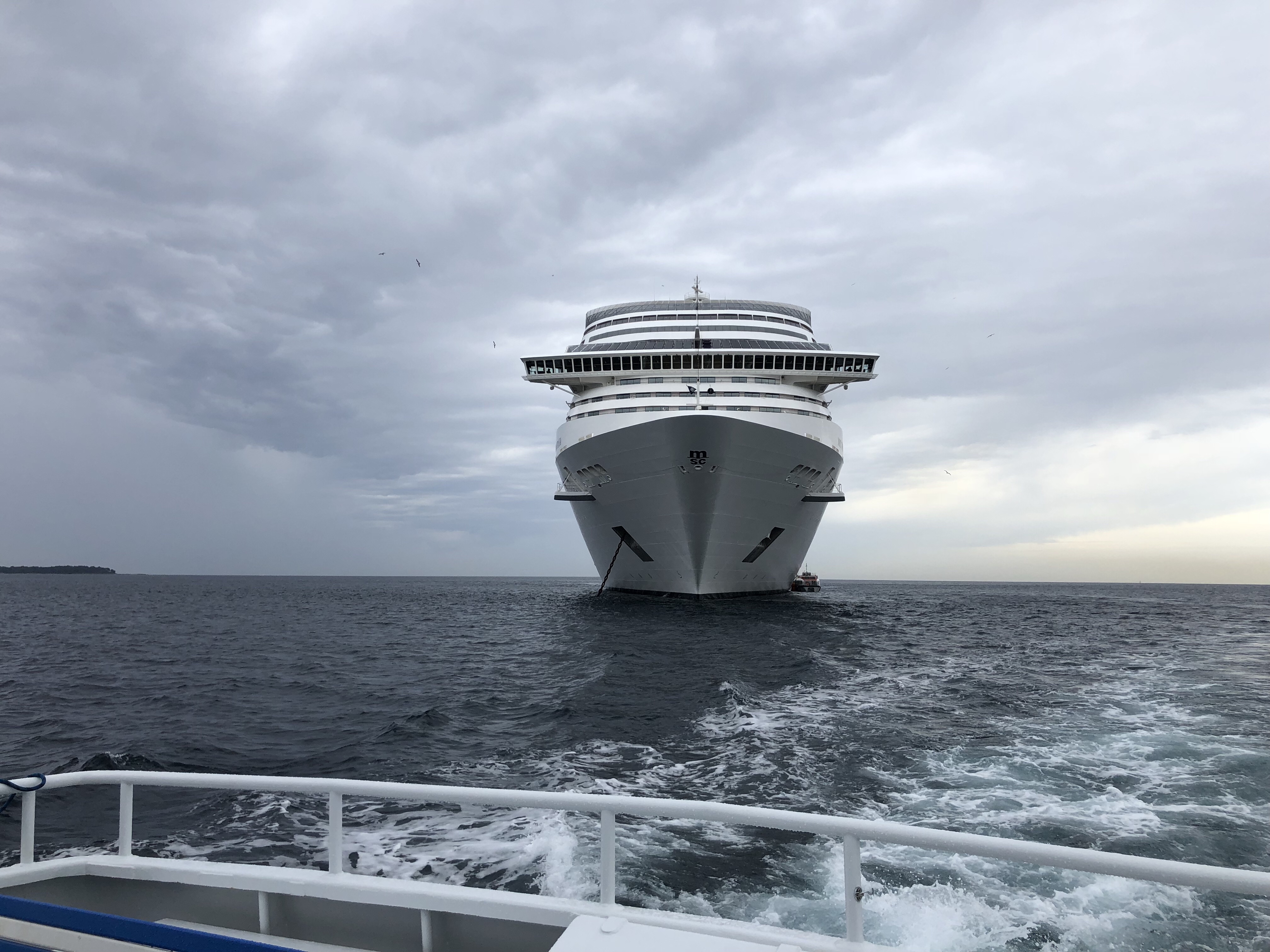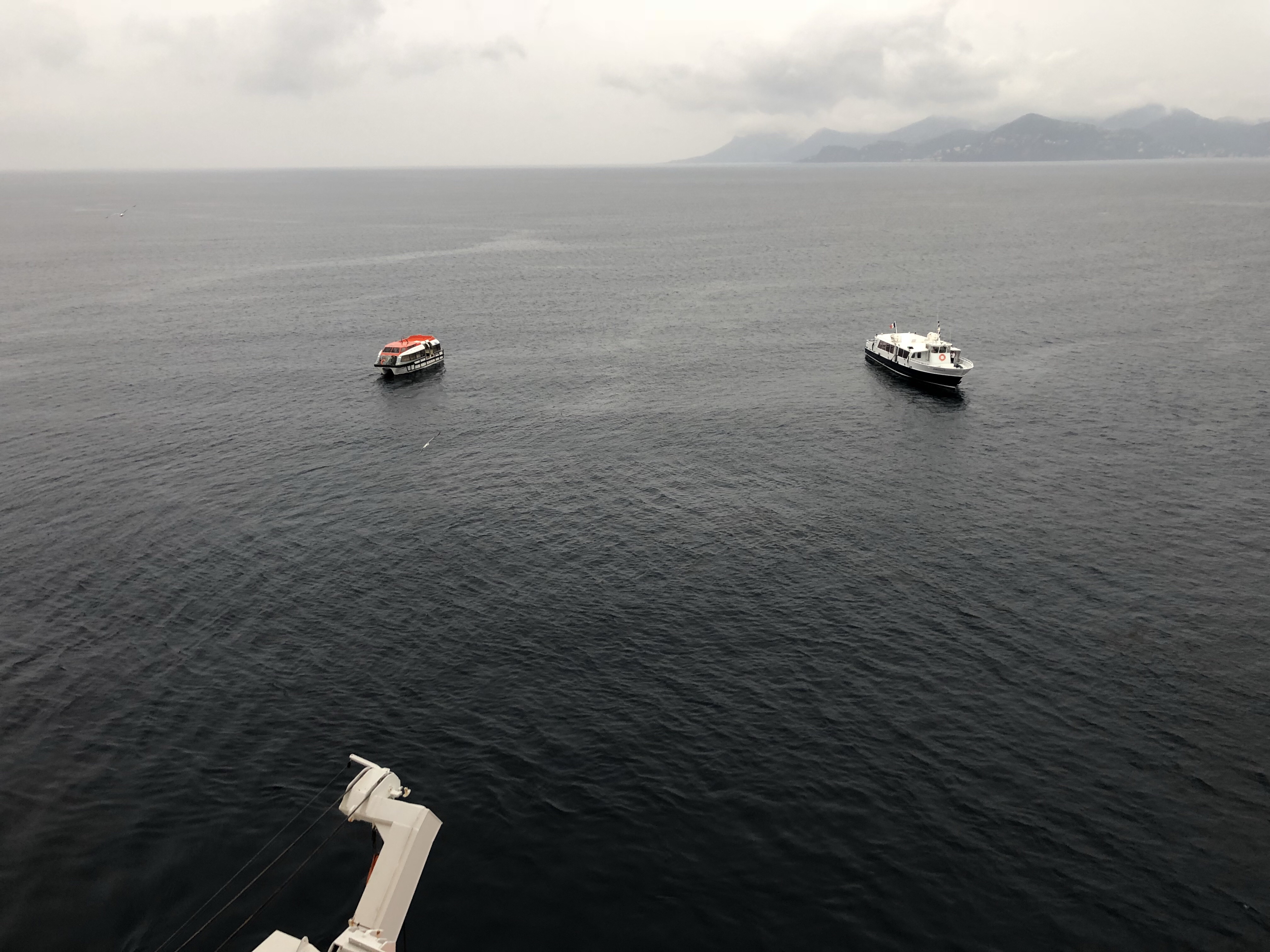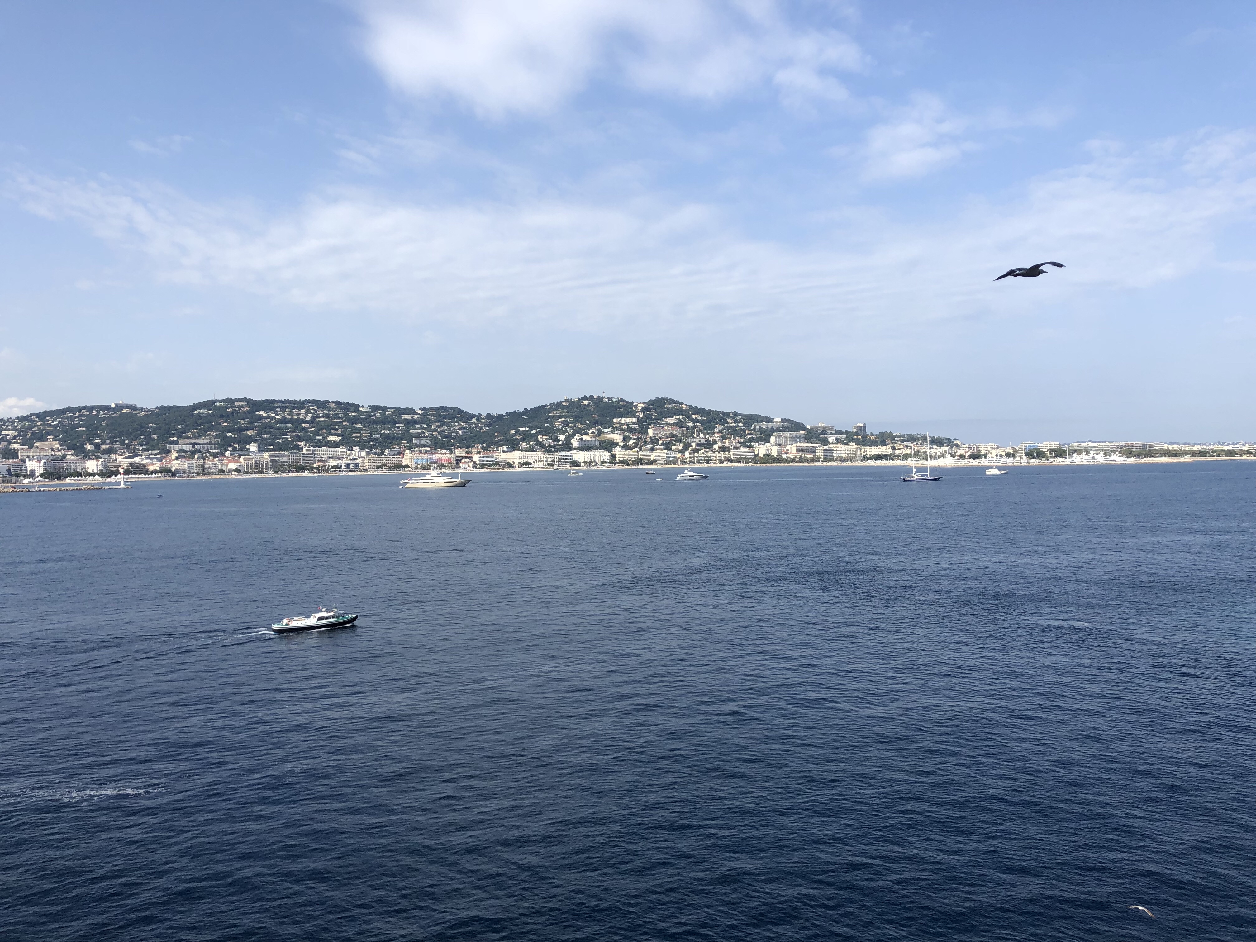 Von der Anfahrt auf den Hafen gibt es hier wenig zu zeigen, da das Schiff nicht in den Hafen einfahren kann. Es ist schlicht zu groß. Wir Ankern vor den Toren der Filmfestspiele-Stadt und setzen mit Booten über an Land.